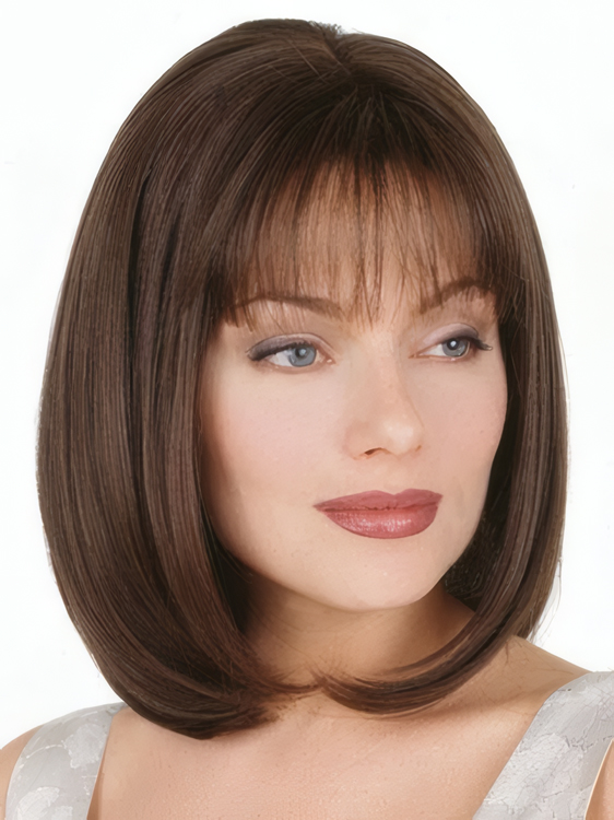 This fashionable glamerous cut bob wig fall just onto the shoulders. A light fringe finishes the hairstyle perfectly.