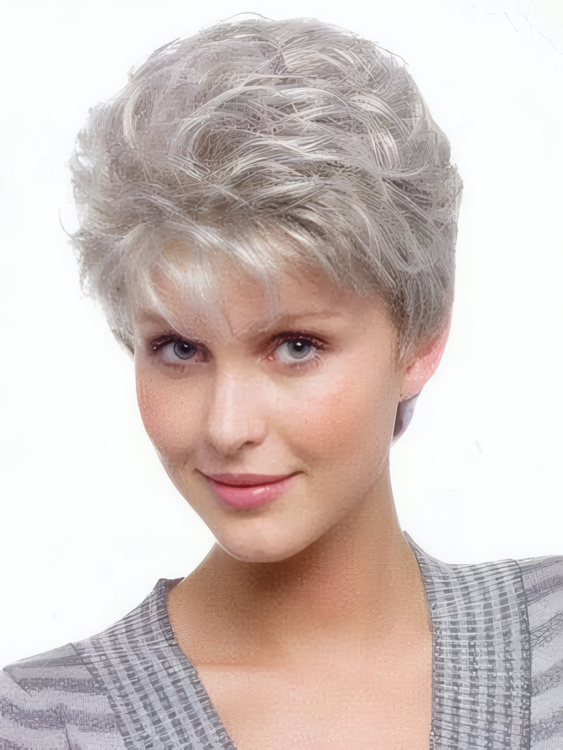 Capless Graceful Wavy Short Gray Wig
