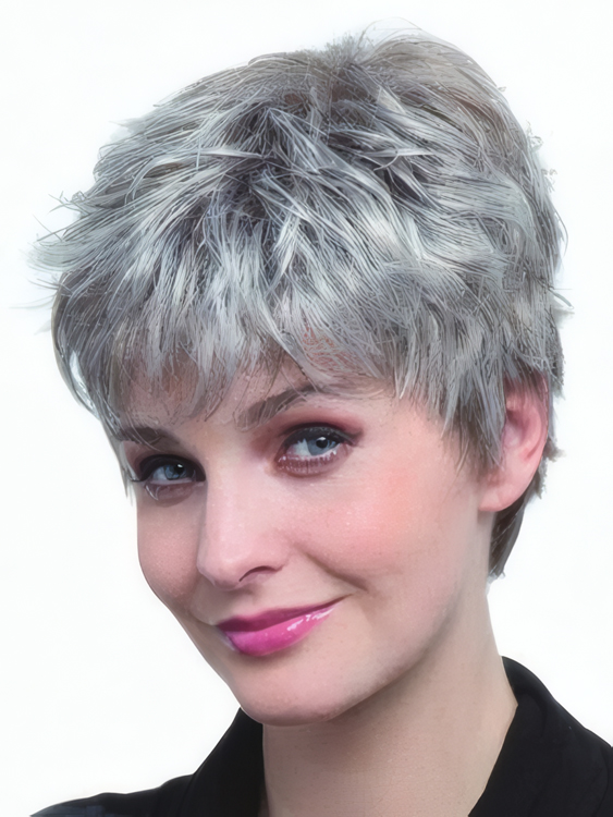 Capless Pixie Style Synthetic Gray Wig