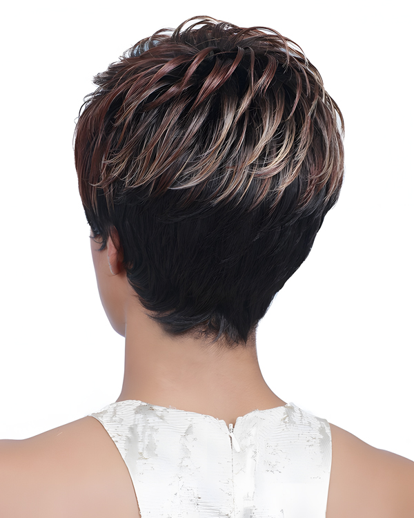Chic Layered Pixie Cut Wig – Short Capless Brown Synthetic Hair for Women