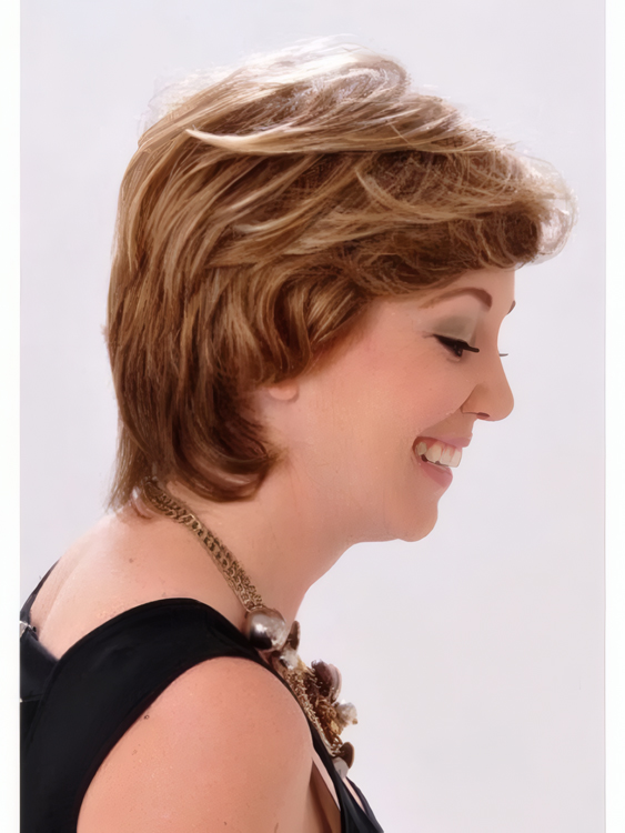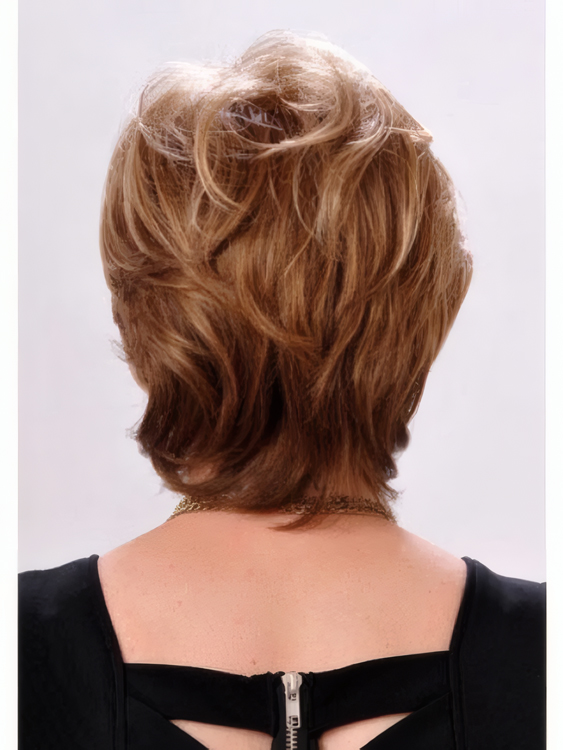 This is a timeless short shag that includes all over layers on top and sides along with our exclusive technology which offers the most natural hairline available. No tape or glue needed!