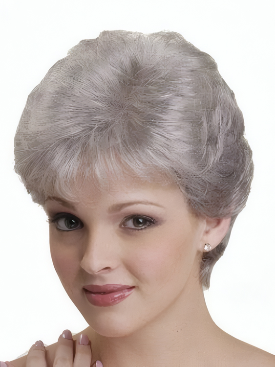 This short Heat Friendly Synthetic Wig hair grey wig with a wefted cap is the perfect choice for those experiencing hair loss, or those seeking the most natural looking and comfortable wig that offers unmatched quality and realism.