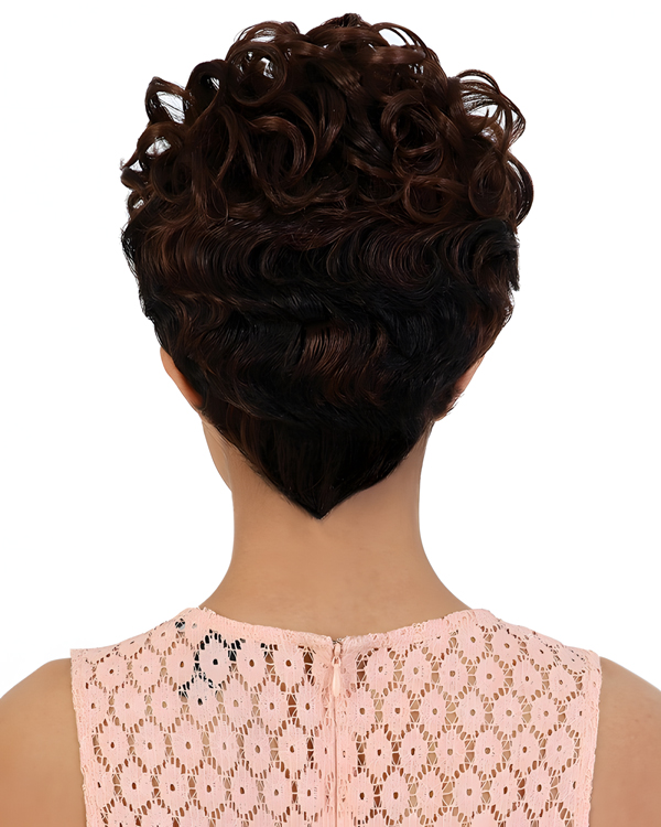 Short Curly Brown Synthetic Wig for Women – Natural Voluminous Pixie Cut, Heat Resistant Daily & Party Wig