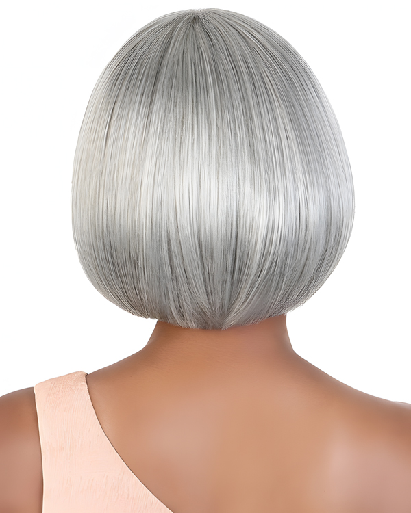 Silver Gray Bob Wig with Bangs – Sleek Straight Synthetic Short Wig for Women